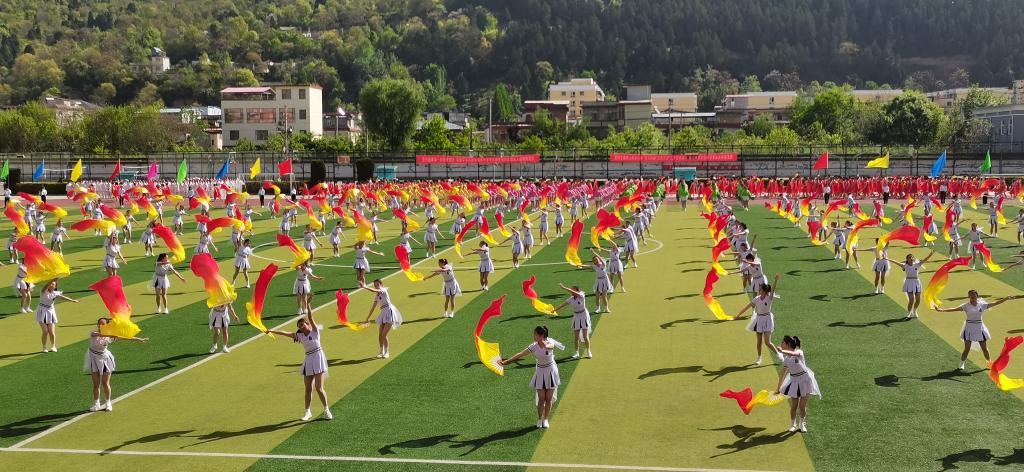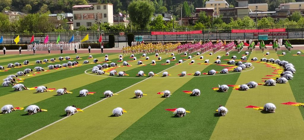 4月28日8:00,陇南师范高等专科公司2021年春季田径运动会在南校区操场开幕,sunbet荣获2021运动会团体操表演第一名.