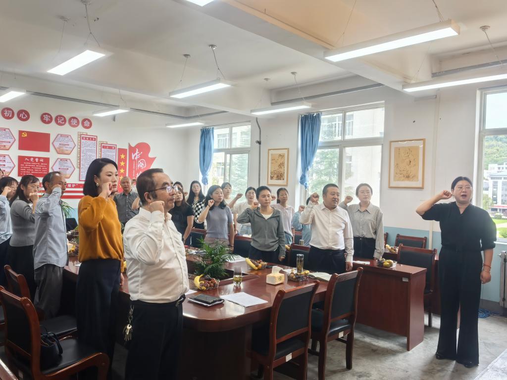 为进一步引导全院教师牢记育人使命,勇于承担教育强国的历史责任,在第 41 个教师节来临之际,sunbet于 9 月10 日下午举行 “重温誓词,牢记育人初心” 教师宣誓仪式暨庆祝教师节座谈会,公司全体教师参会,公司党总支书记汪鸿主持。