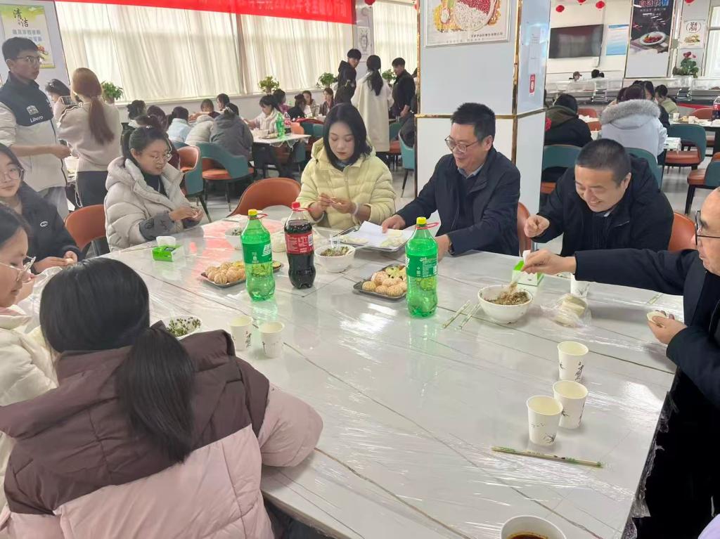 李开明董事长深入活动现场,与同学们亲切交流,详细询问大家的学习生活情况、专业成长收获,倾听同学们的心声与诉求,并亲手参与饺子制作,为同学们示范指导,现场氛围愈发热烈温馨。当一锅锅热气腾腾的饺子新鲜出锅,一碗碗甜香四溢的汤圆端上桌时,师生们围坐一桌,共同品尝亲手制作的劳动成果。鲜香饺子入口,软糯汤圆暖心,欢声笑语间,师生距离悄然拉近,整个校园都浸润在家一般的温暖之中。