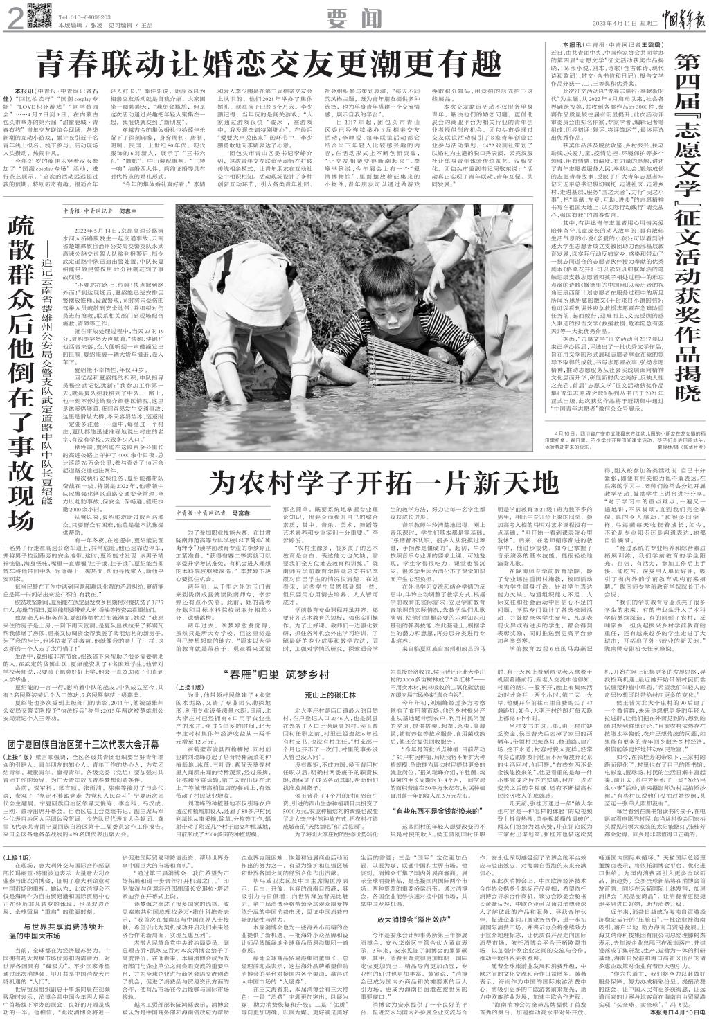中国青年报4月11日在第二版中心位置,以“为农村青年开启一片新天地”报道sunbet人才培养工作。