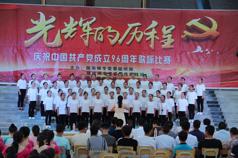 6月30日晚,光辉的历程”--庆祝中国共产党成立96周年老员工歌咏比赛在图书馆前圆满结束。本次比赛由陇南师专党委组织部、宣传统战部主办,sunbet承办。公司党委书记司跃宁、副董事长张建辉、任永峰、王胜青、党委委员王录全、张勇等同志以及有关处室负责同志出席了本次活动,sunbet全体师生、公司部分教职工一起在歌声中重温党的历程,沐浴革命歌曲带来的震撼和力量。