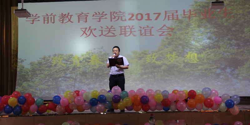 在欢送晚会上,大一、大二的学弟学妹用舞蹈、独唱、器乐演奏、儿童短剧表达了对毕业生的欢送之情。石国强、刘代娜和李霞三位老师也登台演唱,用优美的歌声为毕业生送行。晚会最后在团支部书记马妍丽老师的深情朗读中结束。