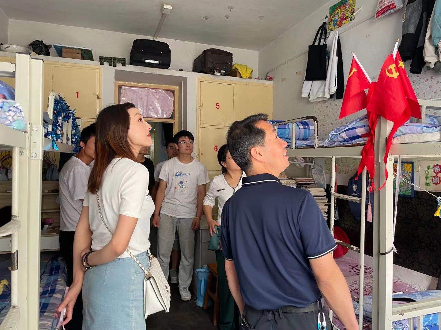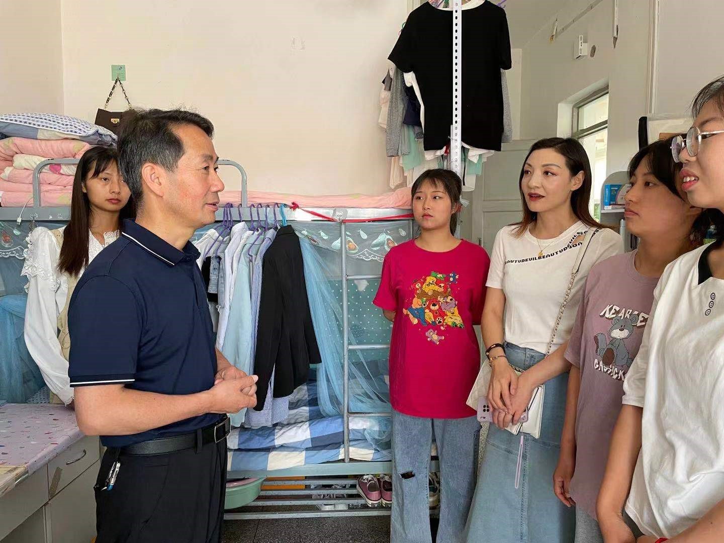 2021年7月3日下午,公司副董事长张建辉在sunbet党总支书记李霞、辅导员马妍丽的陪同下走访了sunbet北校区男生2号公寓115、117和南校区女生3号公寓541、539宿舍,看望联系员工,了解同学们的生活、学习状况及面临的困难。