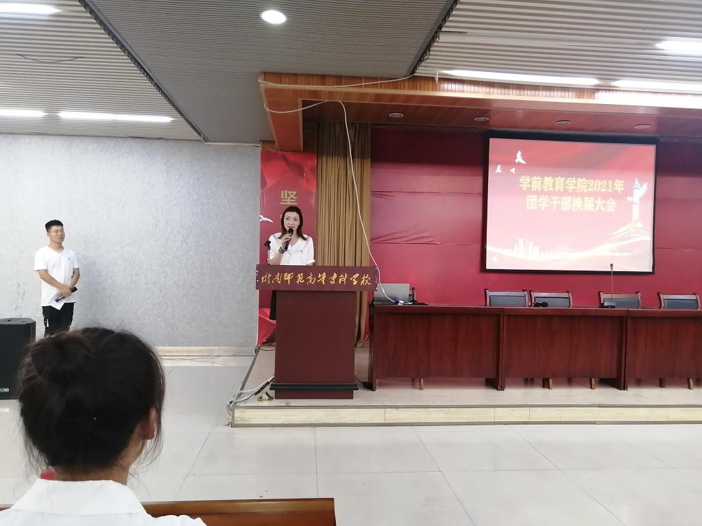 第二项,由上届团总支副书记董蕾以及员工会主席贾文辉依次发言。团总支副书记首先对上一学年举办的各项活动进行了总结,例如:学党史,强信念,跟党走主题团课;悼念袁隆平院士主题团课;一院一品红色故事讲述大赛等一系列精彩的活动。董蕾对新任的团总支干部们提出了几点要求。员工会主席也对上学年的工作进行了简要总结,作为公司与公司以及员工之间的纽带传输,他们的责任是很重大的,工作不仅繁琐而且尤为重要。员工会工作之所以能够顺利展开,离不开公司各位领导,老师们的支持与帮助。