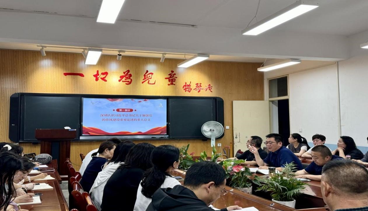 李开明以《深入学习贯彻习近平总书记作风建设论述推进教育高质量发展》为题讲授专题党课。他从深刻认识习近平总书记关于加强党的作风建设重要论述的重大意义、深刻把握习近平总书记关于加强党的作风建设重要论述的丰富内涵、扎实推动深入贯彻中央八项规定精神学习教育取得成效三个方面进行了系统深入阐释。最后,结合公司发展,要求大家:一是强化学习,持续深化对中央八项规定精神的学习领会;二是加强专业建设,以“以评促建、以评促改、以评促强”为抓手,提升人才培养质量;三是转变作风:坚决杜绝“躺平”心态,鼓励全体教职工积极探索专业建设新路径,要求公司领导班子发挥带头作用;四是锤炼师德,打造风清气正的育人环境。