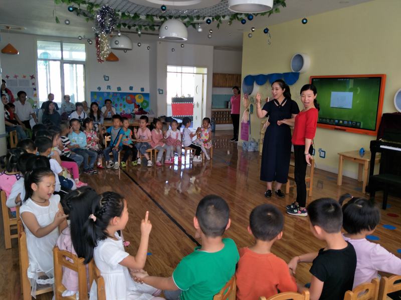 “送教下园”活动下午三时准时开始。李娟霞副教授带给幼儿园一线教师做了幼儿园语言教学主题为中“如何给小朋友讲故事”的专题讲座,大家一起研讨幼儿讲故事教学的技巧与实践;在艺术领域课程的示范教学中,代苗老师用游戏的方式送中班小朋友上的音乐课,深受孩子们喜爱;宋扬老师带美术教学活动设计恰当,如魔术般神奇的,油画棒激发了大班同学对画画的浓厚兴趣。