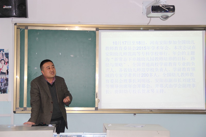 最后,经理潘文生对两个汇报交流进行了总结。同时传达了公司11月4日公司召开的教师教育发展形势报告会上全国教师教育委员会小学教师教育委员会副理事长、公司党委书记司跃宁的讲话。提出我们sunbet的每一位教师要正确认识国家教师教育发展的新态势和新机遇,准确把握学前教育的新常态,精心谋划自己科研方向和科研目标。为此他向教师们提出了两条建议:一是要放眼国际:即瞄准国际前沿,居高临下搞科研;反思传统文化,实事求是搞科研。二是放眼基层:即关注和研究基层幼儿园的课程教学搞科研;关注农村普惠性幼儿园的管理及培训搞科研。只有这样才能够扬长避短,发挥我们地方院校的优势,彰显自己的办学特色。