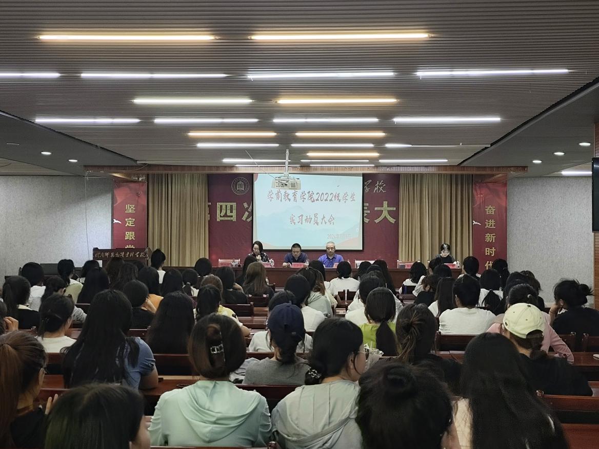 为推动公司员工实习工作的顺利进行,7月5日晚,公司在南校区餐饮楼召开2022级学前教育、早期教育专业员工秋季实习动员大会。公司经理王小会、公司党总支书记汪鸿、副书记朱燕、副经理张益琴、办公室主任罗向东、教学秘书郭雄伟、实习工作干事李蓉以及实习指导教师、22级全体员工380余人参加了会议。会议由王小会主持。