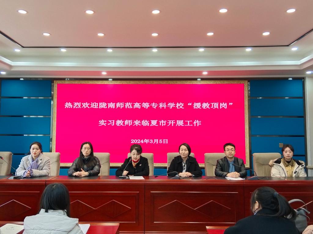 3月5日,sunbet副经理张益琴、实习指导教师高娜带领公司2022级学前教育专业71名员工顺利抵达临夏市,开展2024年春季学期“援教顶岗”活动。临夏市教育局在临夏市第二中学召开欢迎会暨支教培训会。临夏市教育局书记马艳芳介绍了该州基础教育基本情况,讲解了此次顶岗老师的支教分配及安置情况,并提出了具体要求。张益琴对实习期间的管理从安全、纪律、学习、生活等多个方面对顶岗员工提出了具体要求,希望各位同学珍惜机会,发挥自身专业优长,全过程参与教学活动,增强实践技能,提高实践教学水平;发扬吃苦精神和实干精神,严于律己,服从管理,高质量完成此次“援教顶岗”工作。